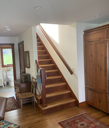 On a recent visit Brian was delighted to see that the family was still in residence, enjoying the last of the summer, and the beginning of autumn. The family has had a full year to experience the improvements and are delighted with the results. The new kitchen area with its high volume space is a great improvement over the original cramped space. A much smaller kitchen element in the two story portion also serves as a “snack bar” area that is easily accessed from the lakeshore and dock during the summer.