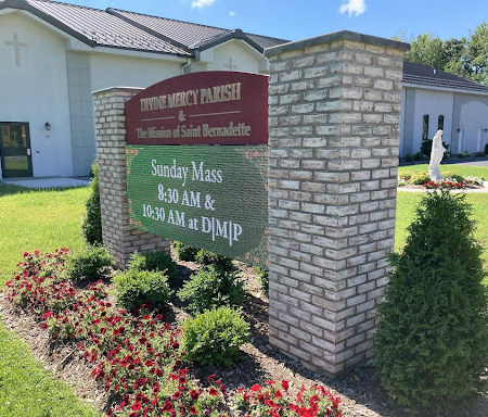 Father Christopher Seibt, the pastor of Divine Mercy received and accepted quotes for the work in the Fall of 2021, and Ed King, the Diocesean Construction Manager helped coordinate the construction. Work proceeded well into the fall with the landscaping, sidewalk installation and base for the statue, as well as the foundations and masonry piers for the new sign.
